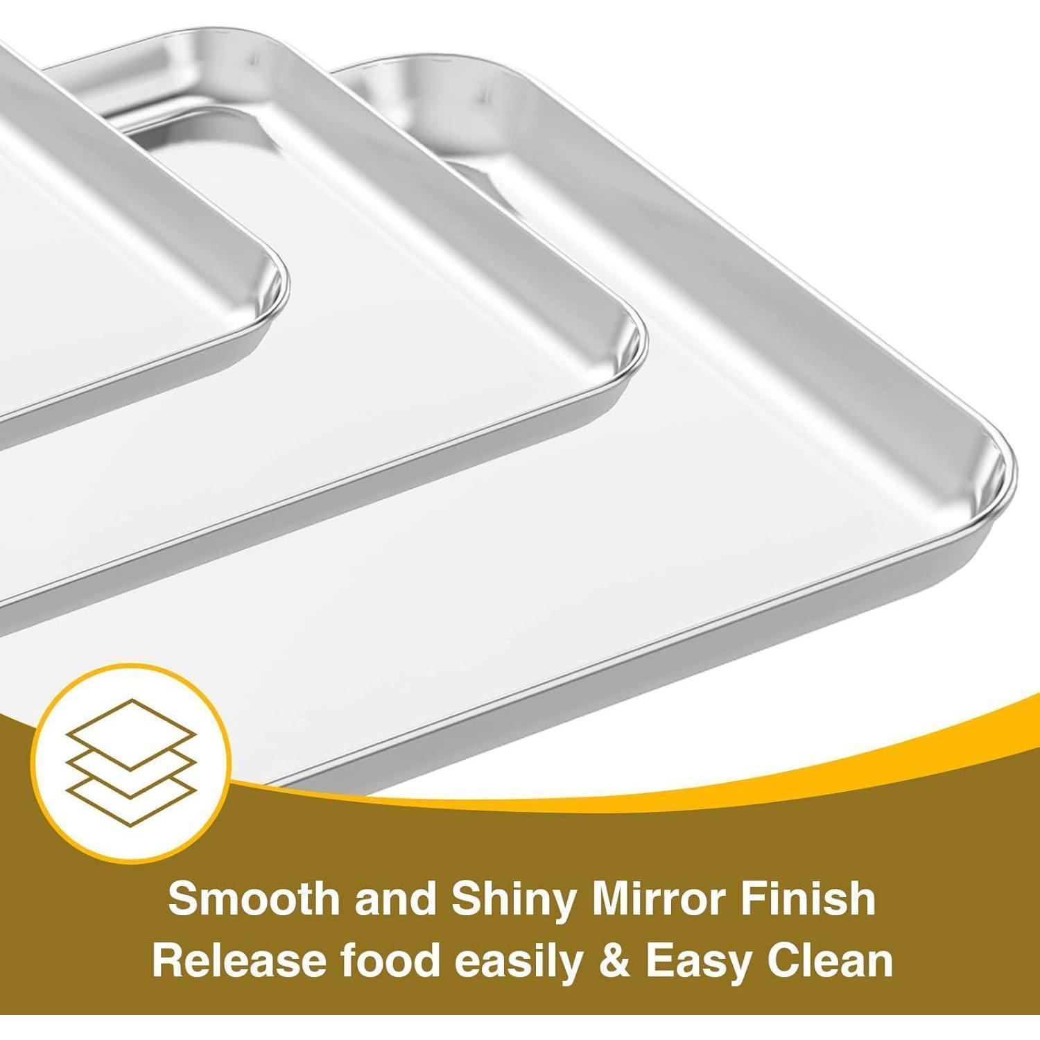 With a smooth mirror finish, these stainless steel baking sheets are easy to clean, either by hand or in the dishwasher, making your cooking experience hassle-free. The sturdy construction of the pans ensures they don't warp easily in the oven, providing long-lasting durability for all your baking needs.
