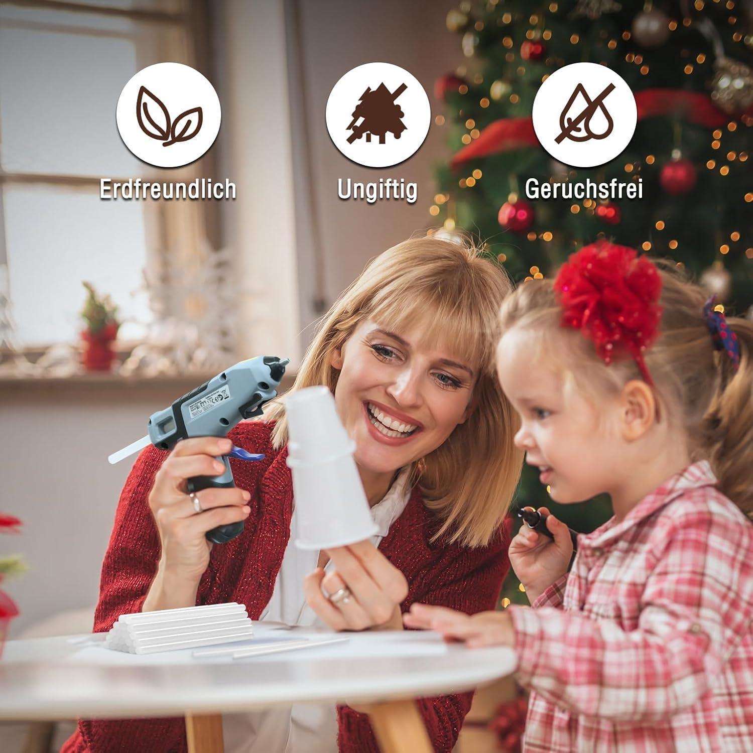 Hochwertiges Material – Hergestellt aus hochwertigem EVA bieten die Klebestifte eine hohe Viskosität, starke Zähigkeit und eine glatte Klebstoffausgabe.