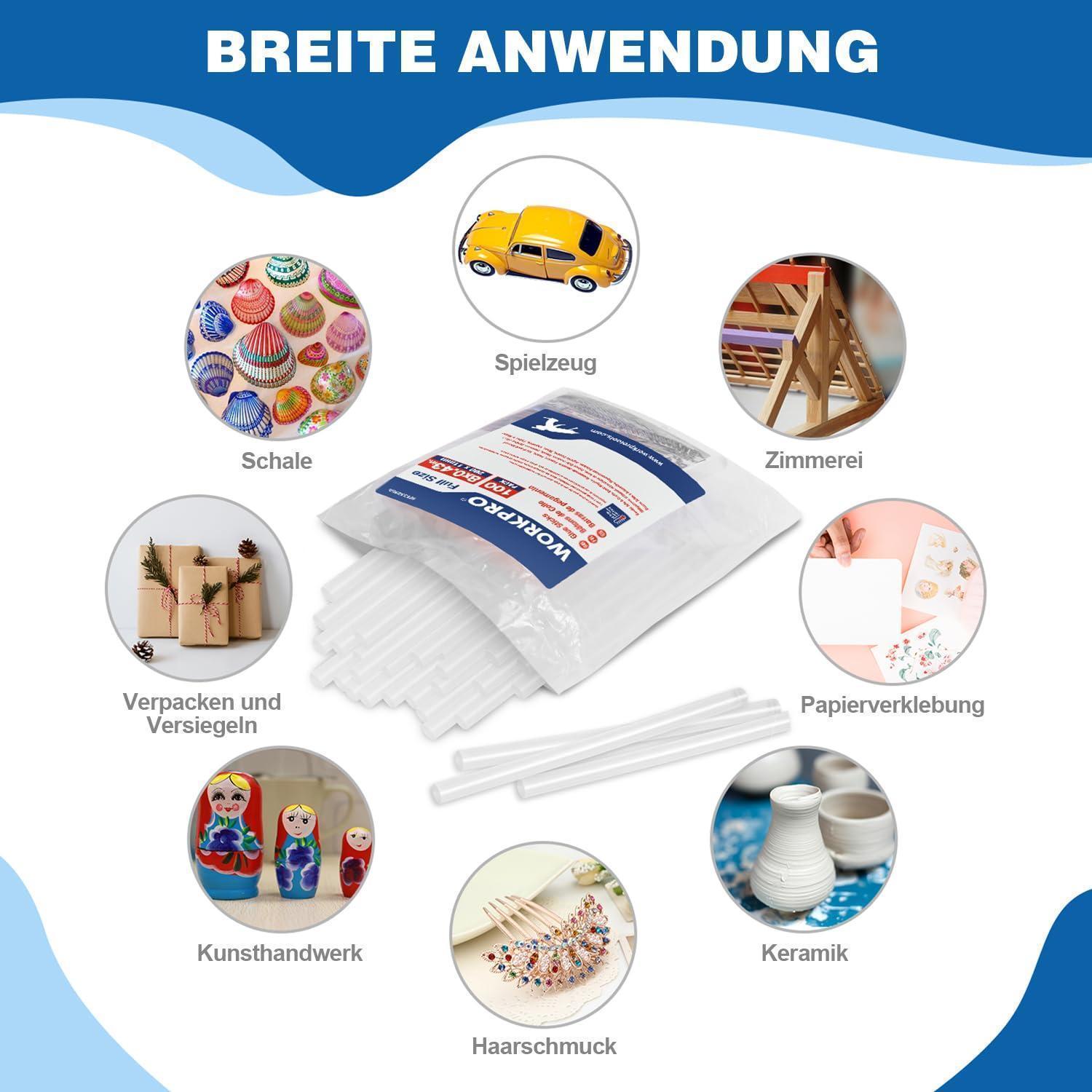 Universelle Größe: WORKPRO Heißklebestifte sind kompatibel mit allen Heißklebepistolen mit einem Betriebsdurchmesser von 11 mm. Darüber hinaus verfügt dieses Set über 100 Teile, die Ihren Bedürfnissen im Haushalt voll gerecht werden.