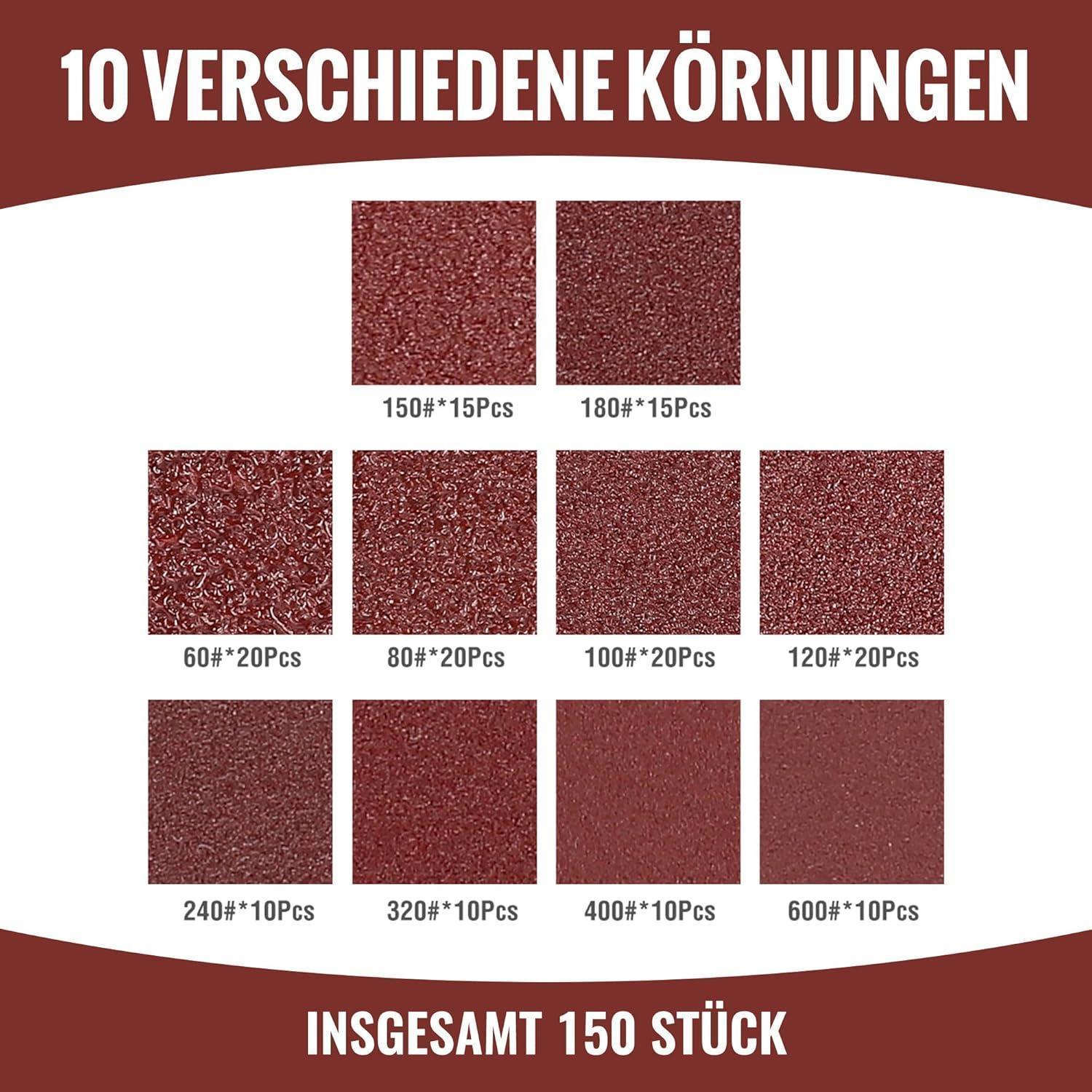 Verschiedene Körnungen - Enthält 9 Arten von Körnungen von grob bis fein (60/80/100/150/180/240/320/400/600) für vielfältige Anwendungsmöglichkeiten.