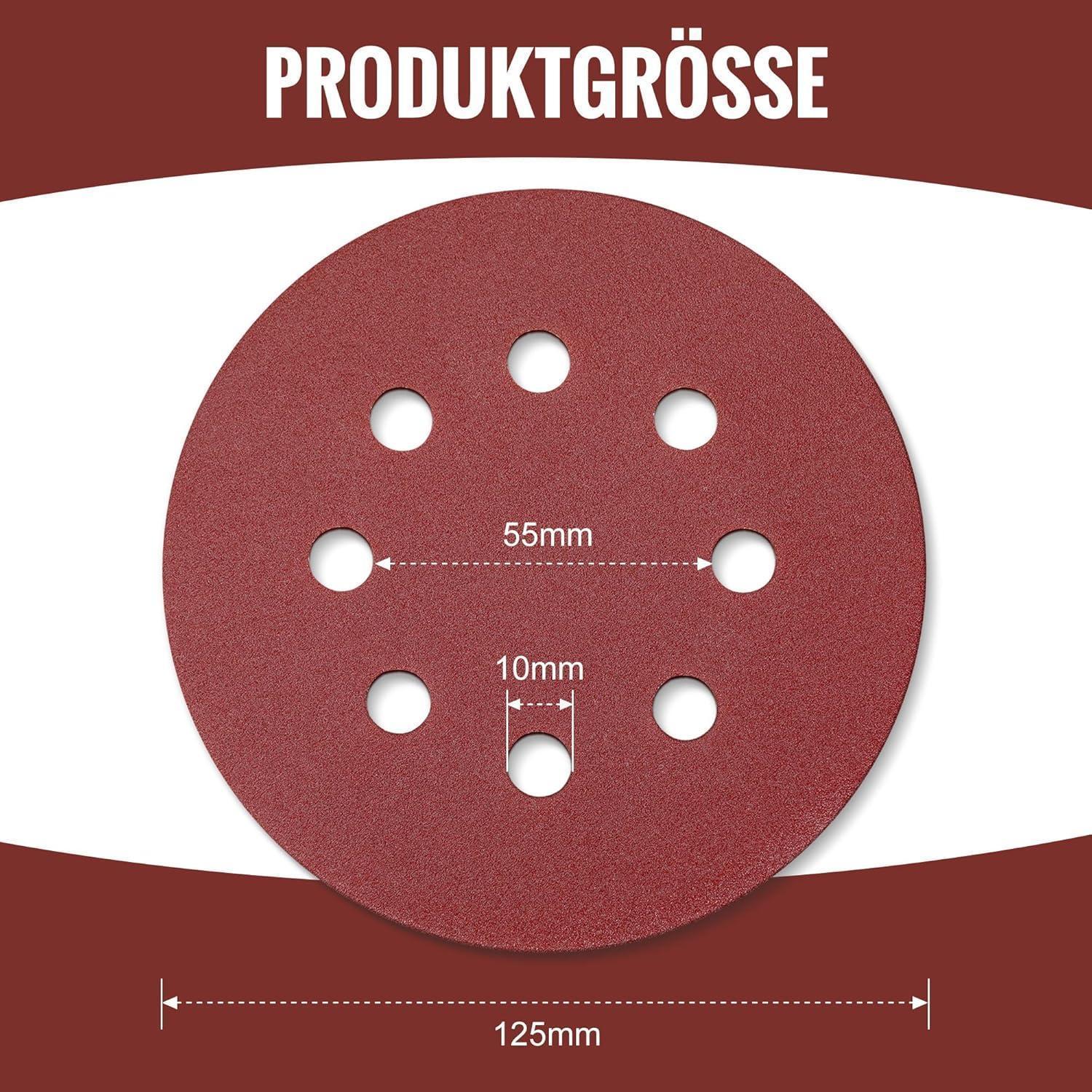 Vielseitiges Set - 150 Stück Schleifpapier mit 8-Loch-Runddesign für eine effektive Staubabsaugung und optimale Ergebnisse.