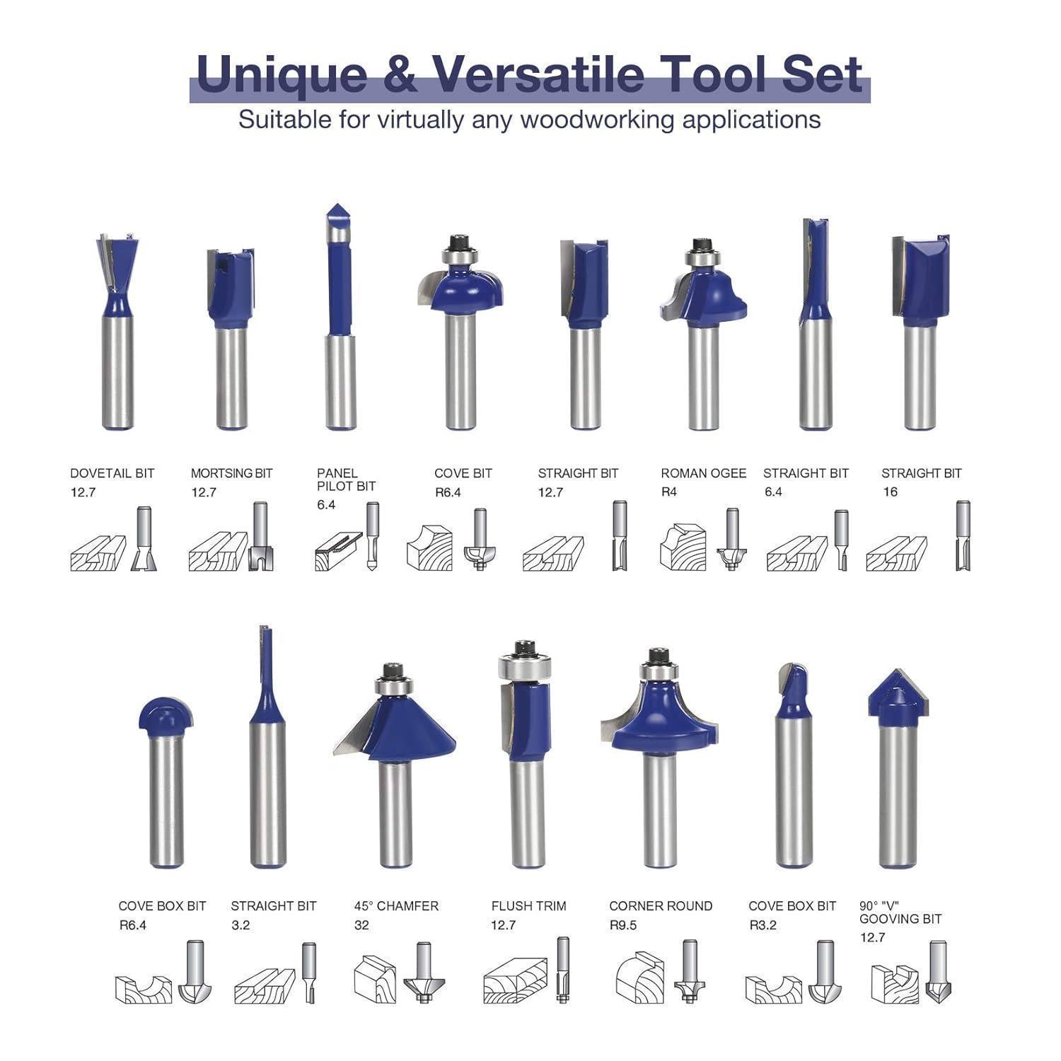 Ob es darum geht, Nuten einzufräsen, Fasen zu erstellen, Profile zu formen, Schablonen zu fräsen oder einfach nur zu säumen und zu rillen, dieses Set bietet die richtige Lösung. Mit Fräsern wie Zinkenfräser, Falzfräser, Nutfräser, Profilfräser und vielen mehr sind Ihrer Kreativität keine Grenzen gesetzt.