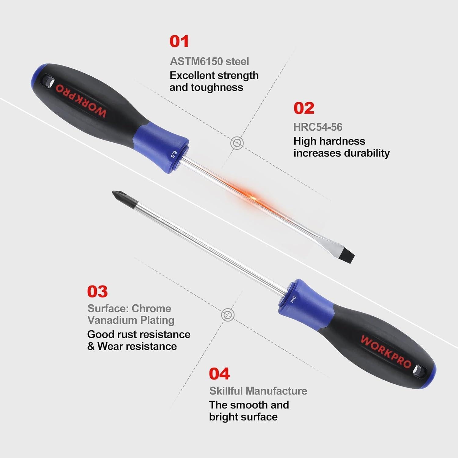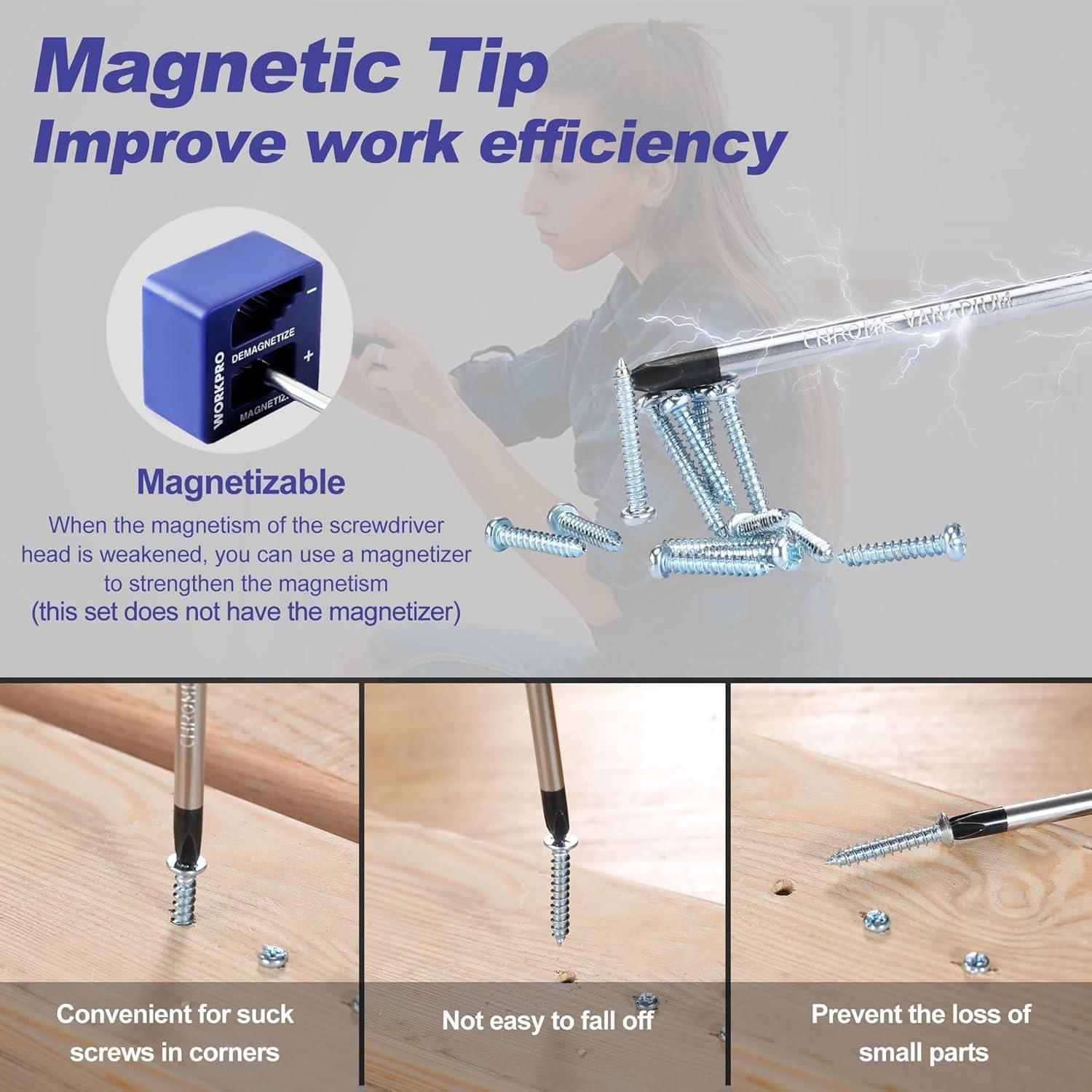 WORKPRO Schraubendreher Set 6-tlg Magnetisch aus Cr-V Stahl
