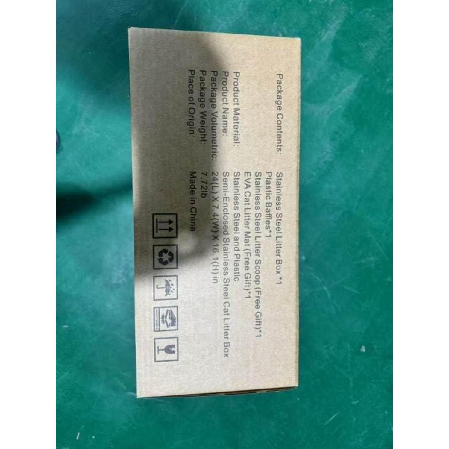 XXL Katzentoilette Edelstahl mit Matte und Schaufel Beige