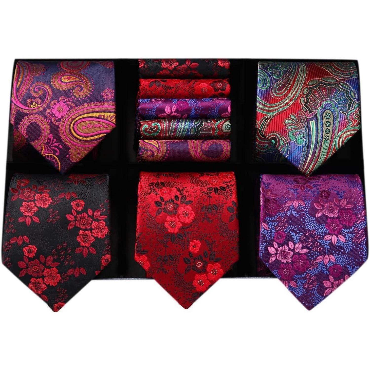 Herren Krawatten Set Los 5 Stück Krawatte mit Einstecktuch Klassisch Elegante Hochzeit Seidenkrawatte und Taschentuch für Männer mit Geschenkbox