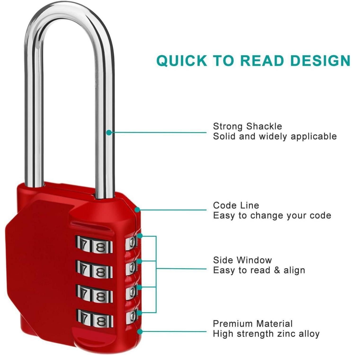Zahlenschloss mit langem Bügel, 4 Ziffern für Tor Tür