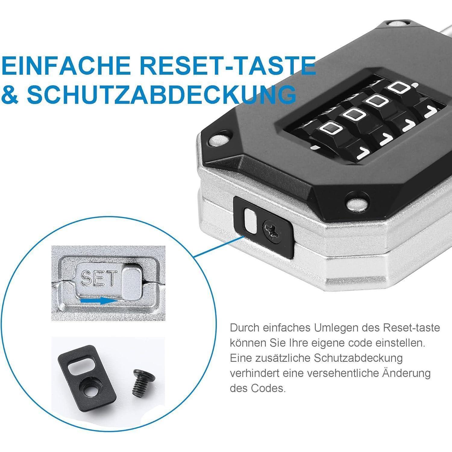 Mit einfachen Einstellungen können Sie Ihre individuelle Kombination festlegen, während das Schloss gleichzeitig 10.000 Kombinationsmöglichkeiten bietet. Der 7 mm dicke Bügel aus gehärtetem Stahl und das Gehäuse aus hochfester Zinklegierung bieten einen hohen Widerstand gegen Schneiden und Sägen, was Ihre Wertsachen sicher schützt.