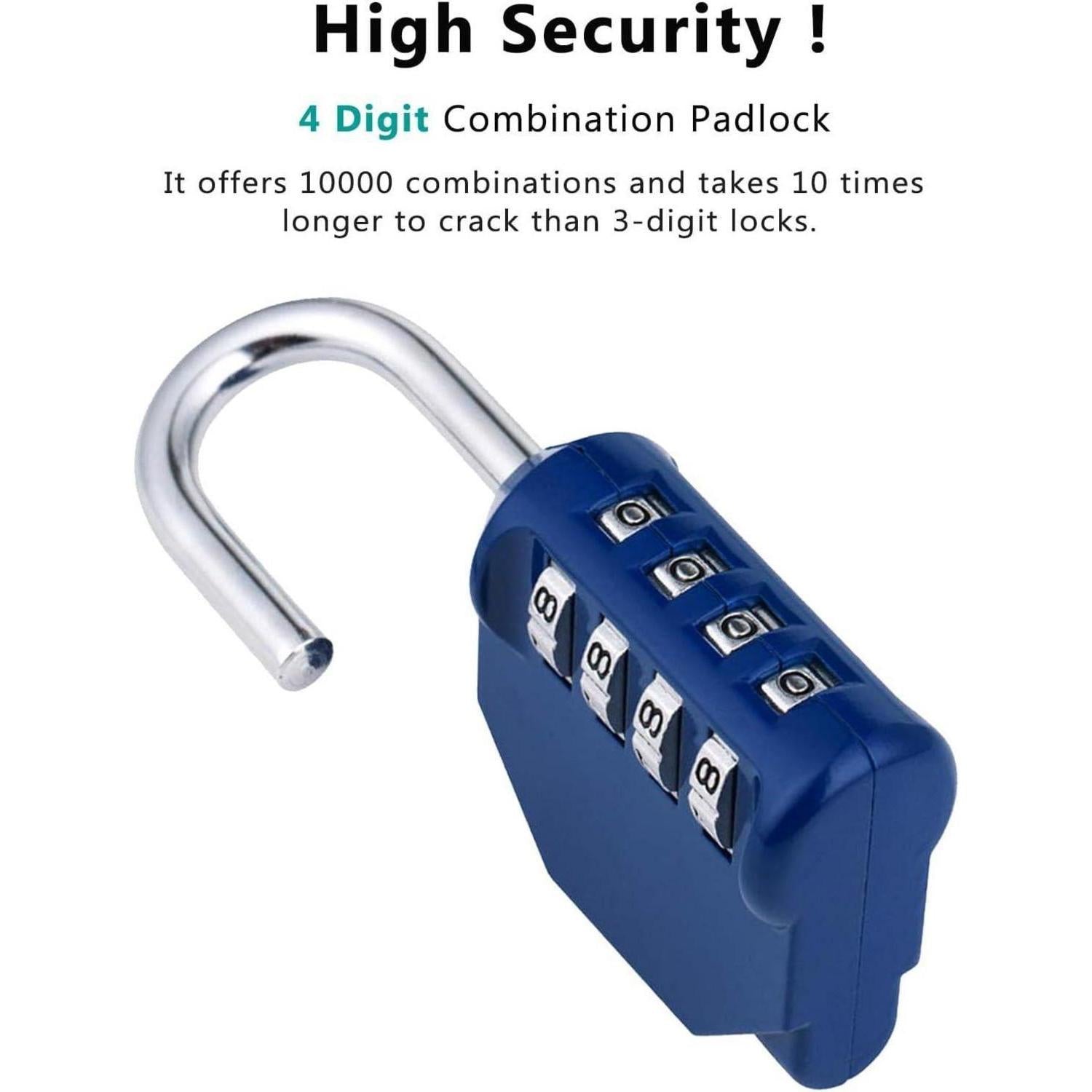 4-stelliger Vorhängeschlosssatz: Mit der Möglichkeit, 10.000 Kombinationen festzulegen, bietet das Rückenpolster-Zahlenschloss eine 10-mal höhere Sicherheit als ein 3-stelliges Schloss und verhindert das Vergessen des Passworts.