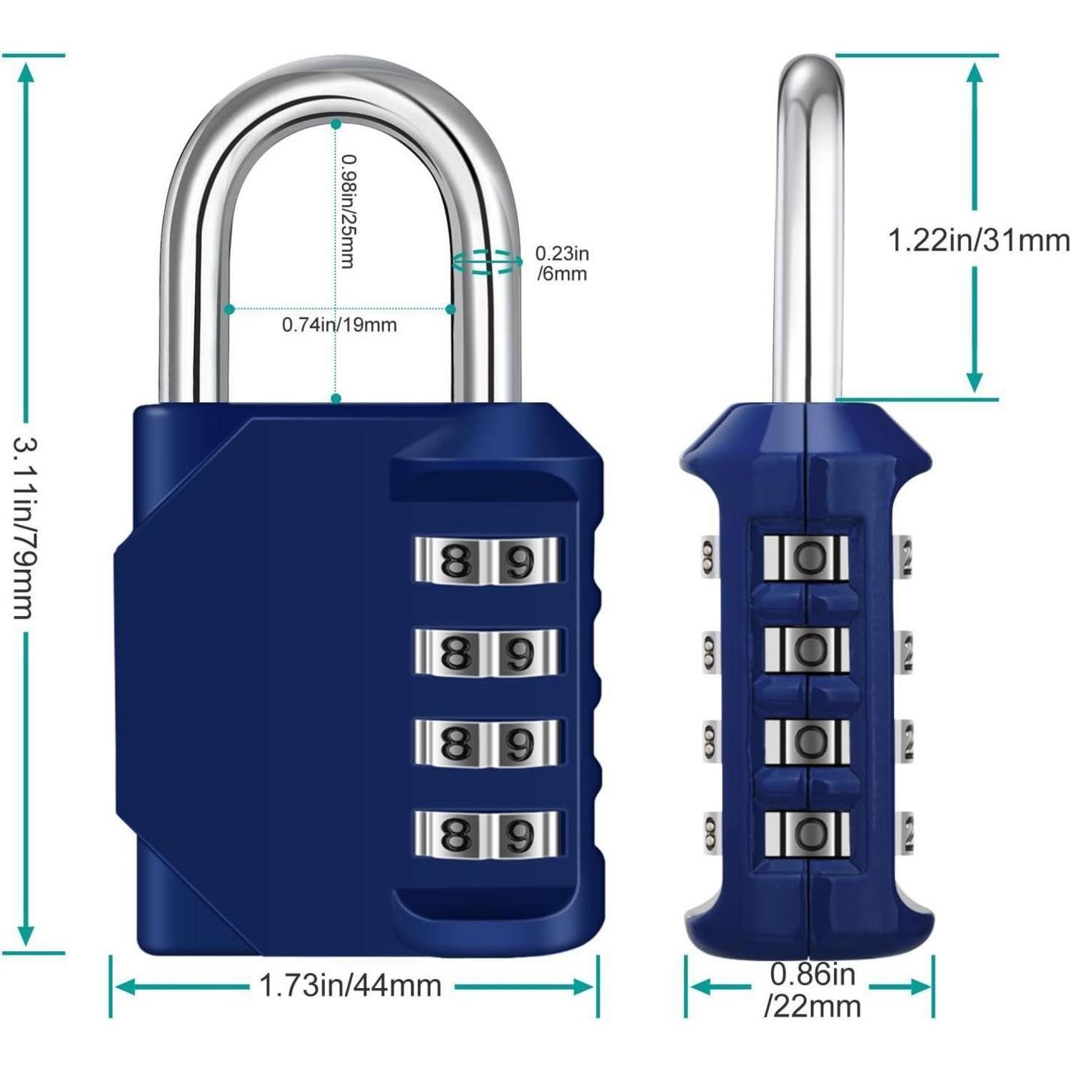 ZHEGE-Zahlenschloss mit 4-stelliger Kombination für Fitnessstudio, Schule, Outdoor und Mitarbeiterschließfach, Blau 2 Stücke