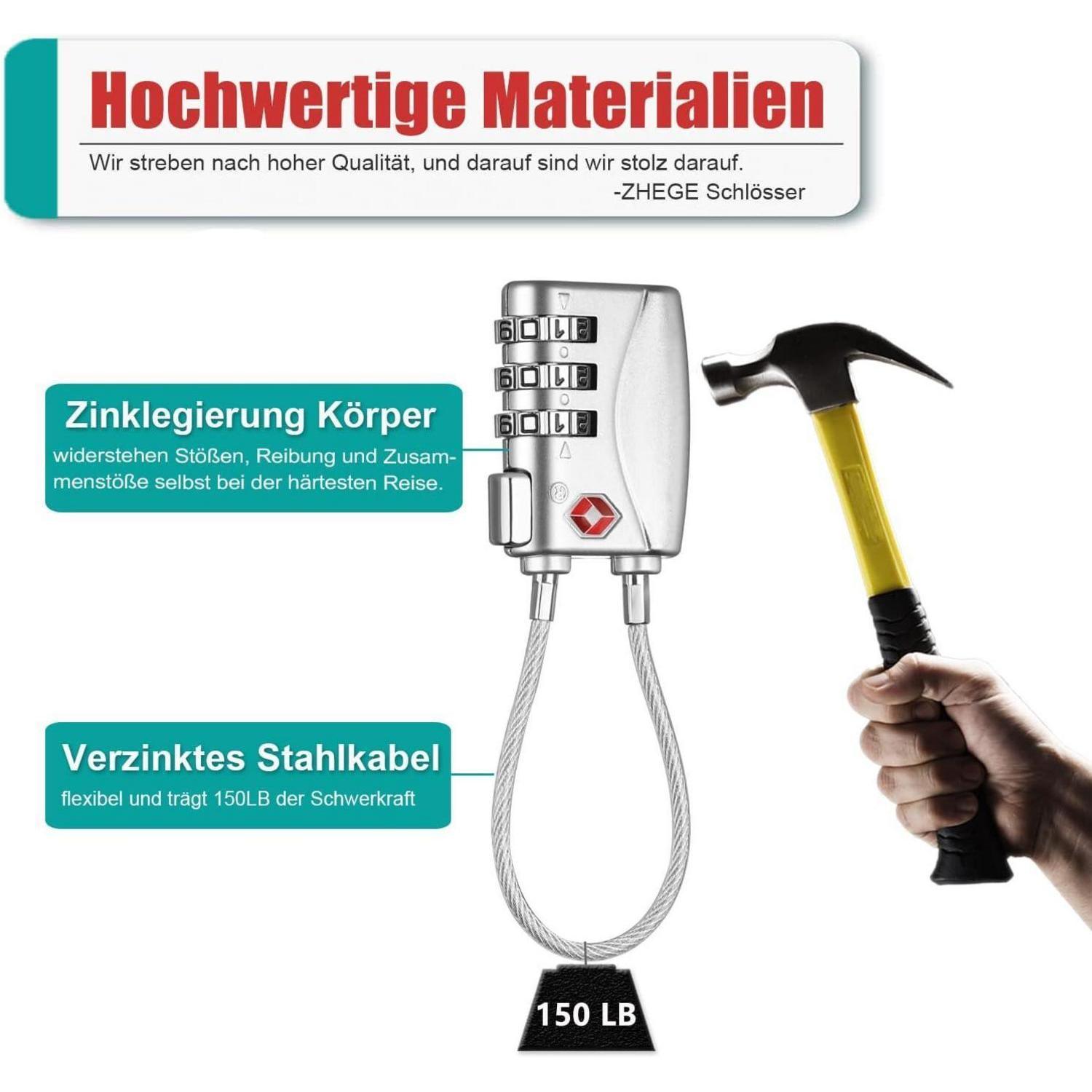 Das ZHEGE Zahlenschloss Koffer, 3 Stellig Kofferschlösser, Kabelschloss, Reiseschloss, Kleines Schloss Spind für Gepäck, Rucksack und Spind ist die perfekte Lösung, um Ihre Wertsachen auf Reisen zu schützen. Mit einer im Lieferumfang enthaltenen 60-tägigen Geld-zurück-Garantie und einer einjährigen Garantie können Sie bedenkenlos kaufen. Dieses 2er-Pack Silber Zahlenschlösser bietet die ultimative Sicherheit und Flexibilität.