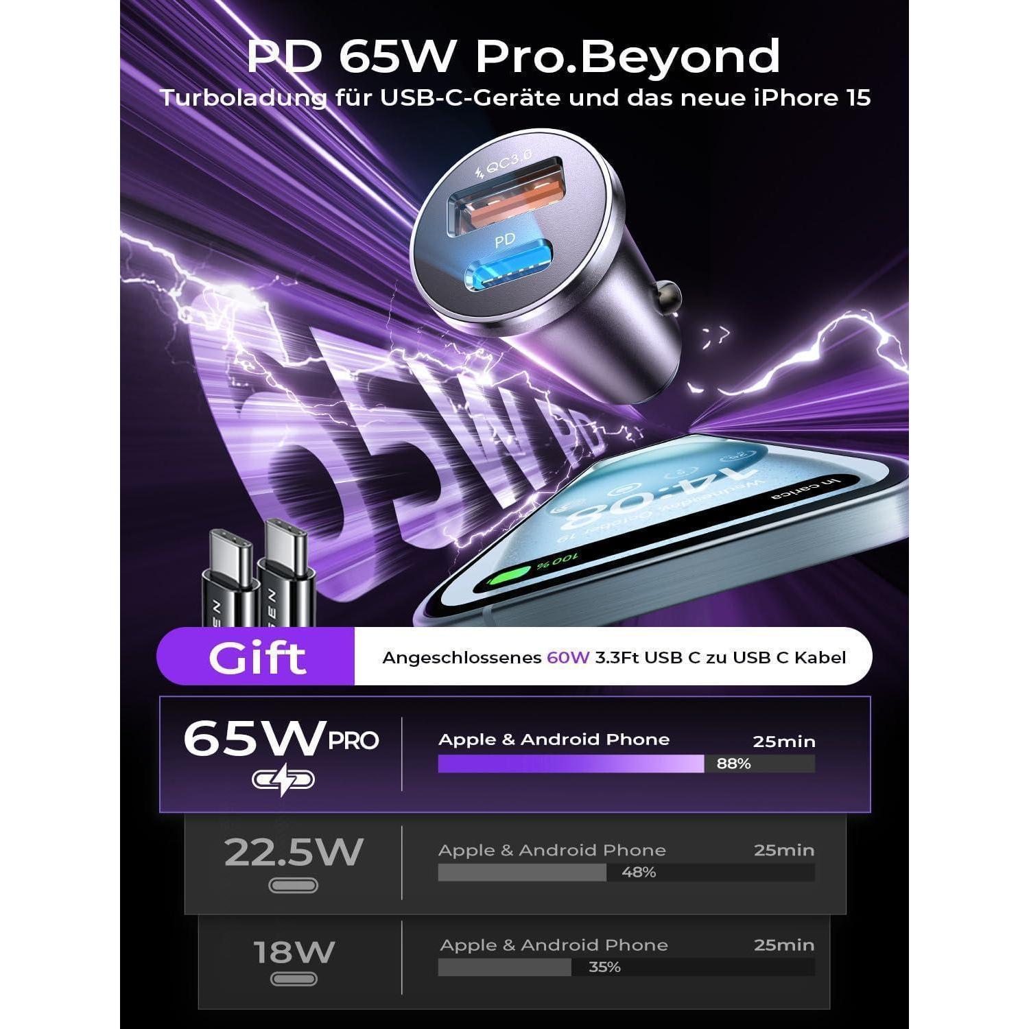 Zigarettenanzünder USB C Verteiler 66W PD Dualer